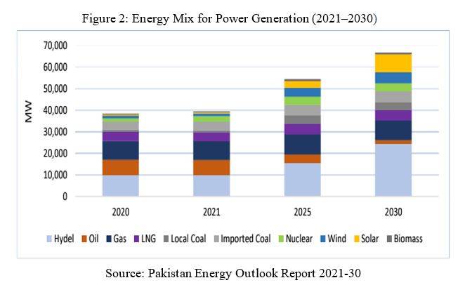 Pakistan’s overall energy mix comprises 27.03% oil, 24% natural gas, 24.83% coal, 7.54% hydroelectricity, 5% nuclear energy, and 12.19% other resources (Figure 1). The country’s installed electric power generation capacity stands at 46,221 MW, which includes 52.09% thermal, 25.56% hydel, 17.43% nuclear, 4.58% renewables, and 0.35% imported electricity (Table 1).